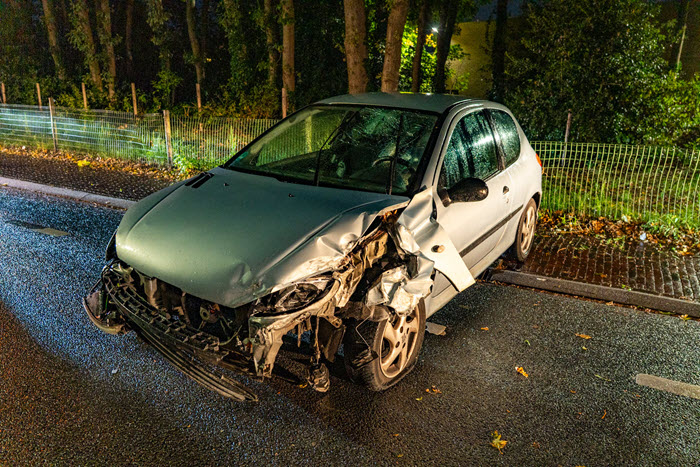 Op de Handelsweg in Putten is vrijdagavond rond 19.50 uur een auto uit de bocht gevlogen en tegen een geparkeerde vrachtwagen gebotst.