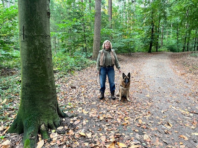 Evelien gaat graag op stap met haar Duitse herder Nena. Foto Joyce Kruizenga-Elskamp