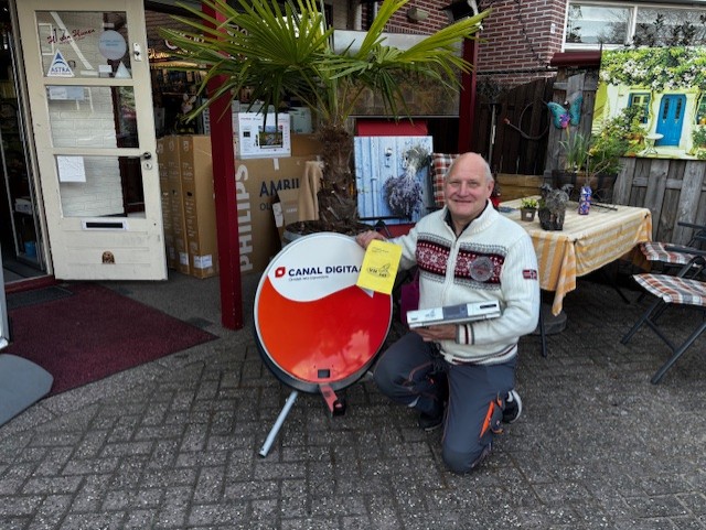 Henk zijn werk is zijn hobby met speciale interesse voor schotelantennes. Foto: Joyce Kruizenga-Elskamp