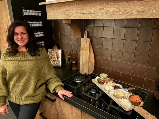 En dat gaat haar prima af met twee jonge kinderen, een dertienjarige hond, zes kippen en twee Vlaamse hangoorkonijnen en een driedaagse werkweek. Tijdens vakanties gaat het gezin het liefste naar de zon, zoals Egypte, Spanje of Kroatië. “Overdag werk ik vanwege de producten in een koele winkel en daar ben ik helemaal aan gewend. Ik heb thuis dan ook nooit de kachel aan.” Naast haar werk in de winkel levert ze samen met een vriendin in haar vrije tijd borrelplanken. “Ik hou van lekker eten en drinken, zoals goede wijn met lekkere hapjes. Dit is dus eigenlijk een beetje een uit de hand gelopen hobby, maar wel een hele leuke.”
