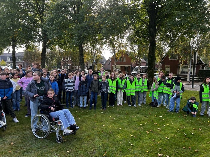 Hierna liepen de leerlingen een stille tocht door de straten van het centrum naar het monument De Vrouw van Putten.Pieter Dekker vertelde daar over de geschiedenis die Putten zo enorm getroffen heeft