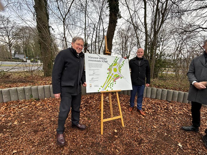 De huidige oversteek van de Hoofdlaan met de Oude Rijksweg (N798) staat al lang ter discussie. Maar vanmiddag is daar een einde aangekomen door de ondertekening van de samenwerkingsovereenkomst voor een veilige oversteek op die plek.