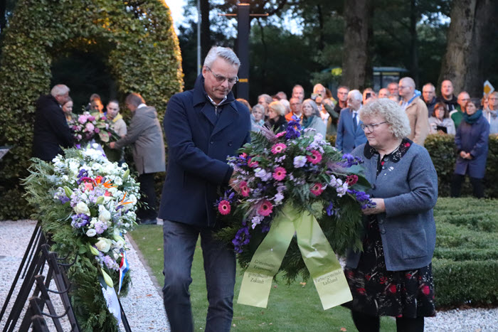 Burgemeester Lambooij legde samen met zijn echtgenote een krans namens het gemeentebestuur. Andere instellingen en verenigingen volgden. Dit jaar legden twee leerlingen uit groep 8 van basisschool De Pelikaan een krans namens alle Puttense leerlingen. Na de kranslegging speelde fanfarecorps Excelsior twee coupletten van het Wilhelmus. Na afloop van de officiële plechtigheid kregen alle bezoekers de mogelijkheid om bloemen bij het monument te leggen.Na een muzikale bijdrage van ’t Zuiderkoor en Fanfarecorps Excelsior, werd twee minuten stilte in acht genomen ter nagedachtenis aan de slachtoffers van de razzia