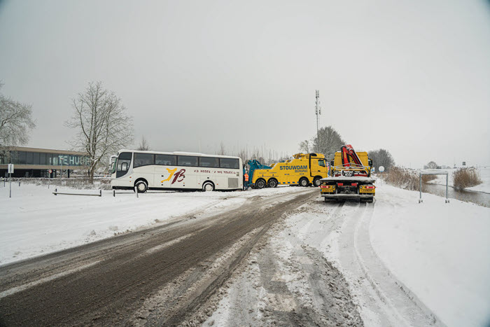 De touringcar kon niet meer op eigen kracht uit de greppel komen. Er werd daarom een bergingsbedrijf ingeschakeld. Met behulp van zwaar materieel wist de berger het voertuig weer uit de greppel te trekken.Tijdens de manoeuvre gleed de achterkant van de bus in een greppel, waardoor het voertuig vast kwam te zitten